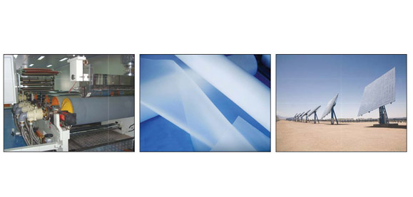 全自动称重式计量装置,确保各种固体和液体添加剂以及高精度的原材料进料;低温挤出系统可以在确保充分混合和塑化的同时,以防添加剂提早固化和交联。特别设计理想化解了粘辊和脱皮的疑问;与众不同的在线回火至应力装置;生产线中有多个张力控制系统,因此在降温,牵引和卷绕过程中,柔性片材可以稳定输送;在线自动厚度测量和瑕疵检测装置可提供有关包装薄膜产品质量的实时反馈。